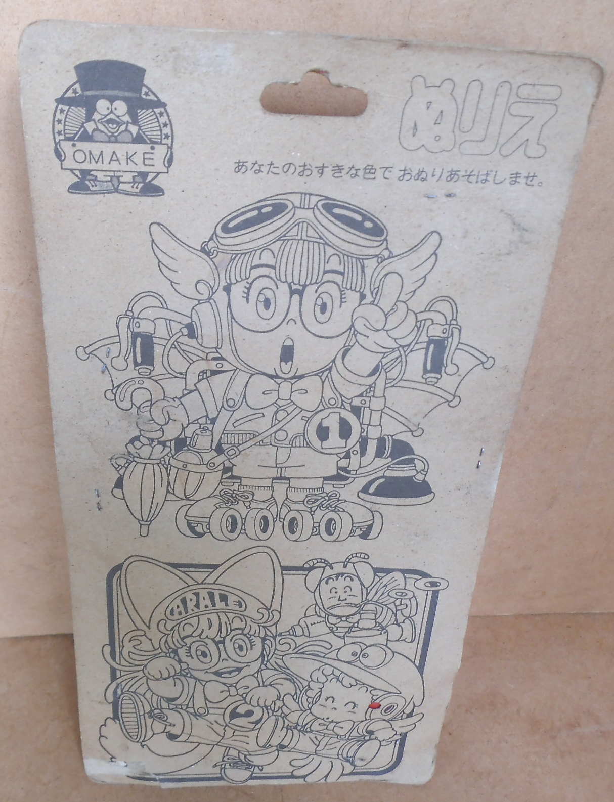 有ります。裏面はぬりえになってます。マスコットペンは上部アラレちゃんの人形付きです。