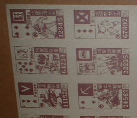 左のように当事駄菓子屋で売ってたくじ引き用の角メンコです