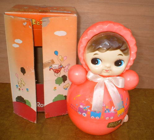 今回、そんなにふるくはないですが昭和時代のおきあがり人形、抱き人形、ユーアイの回転オルゴール人形まず3点